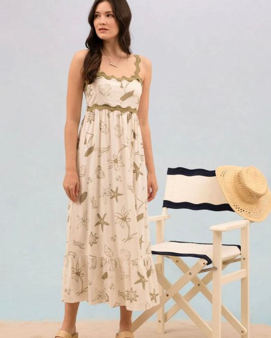 Ocean Breeze Sea Shell Linen Blend Dress